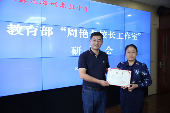 周艳校长为工作室成员校长颁发了“国培计划”中小学名校长领航工程结业证书、优秀学员证书。