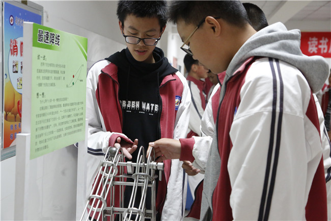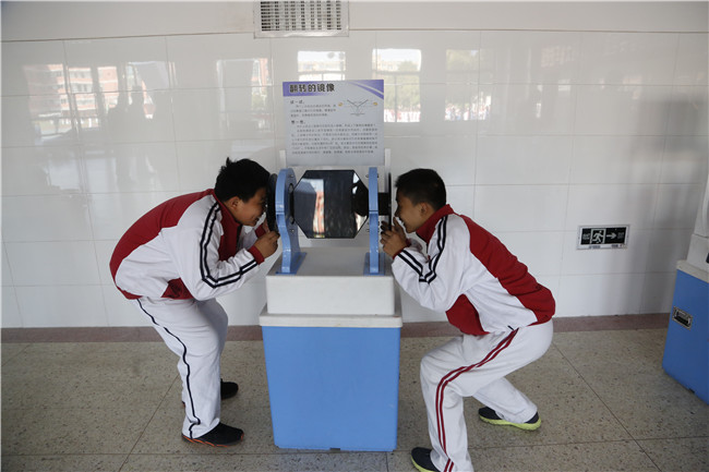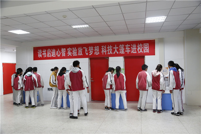 10月30日,市科协科技大篷车开进了新海实验中学延安校区。在科技楼一楼大厅,“静电乒乓”“懒惰环”“最速降线”“双曲狭缝”“椎体上滚”“磁力传动摆”“翻转的镜像”“看谁跑得快”“天鹅绒触觉”“动画”等诸多仪器设备,使同学们体验了触觉错觉、余晖效应、平面镜应用、静电、感应电流、磁体间相互作用、重心位置改变等科学现象,探究了转动惯量、电磁阻尼、双曲面、最速降线等高难度数理知识。通过思考、交流和讨论,激发了同学们对科学实验的浓厚兴趣,提升了他们的科技素养。