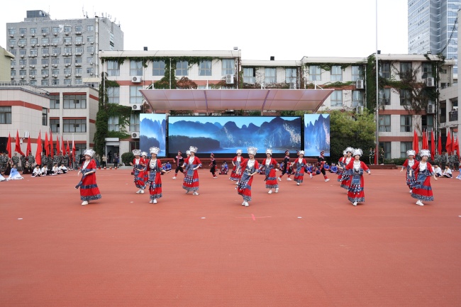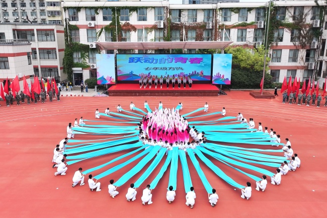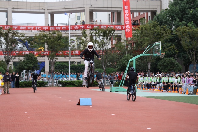 开幕式上,学校管乐团、健美操队和体育舞蹈队带来了富有青春活力和家国情怀的表演。七年级同学以彩带纷飞勾勒《跃动的青春》,八年级同学用舞蹈与单车表演展现《我的青春我做主》的个性,九年级同学以《扇舞苍穹,青春无畏》表达对梦想的追逐,高一年级通过《智汇青春,筑梦启航》的主题拥抱未来,高二年级身着民族服装,演绎《多彩民族风,跃动少年志》。
