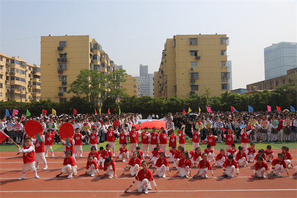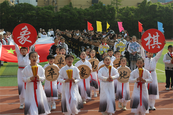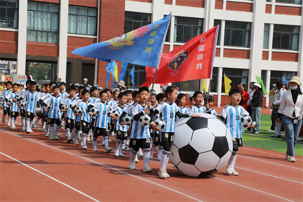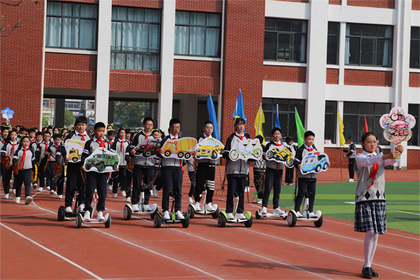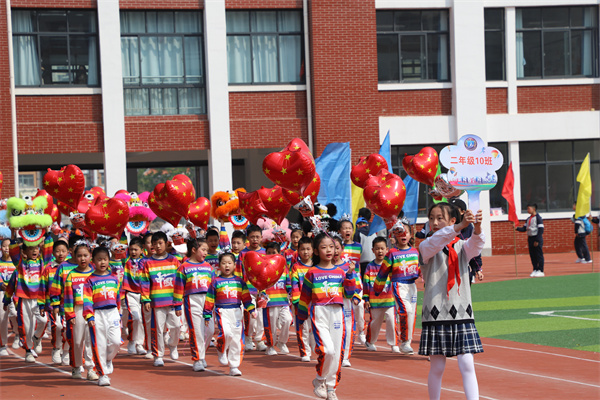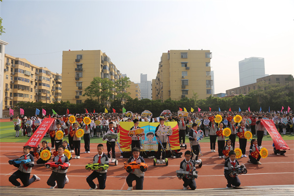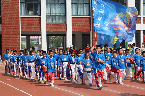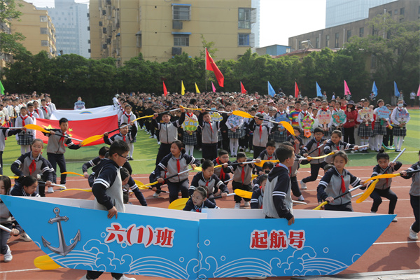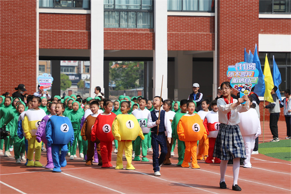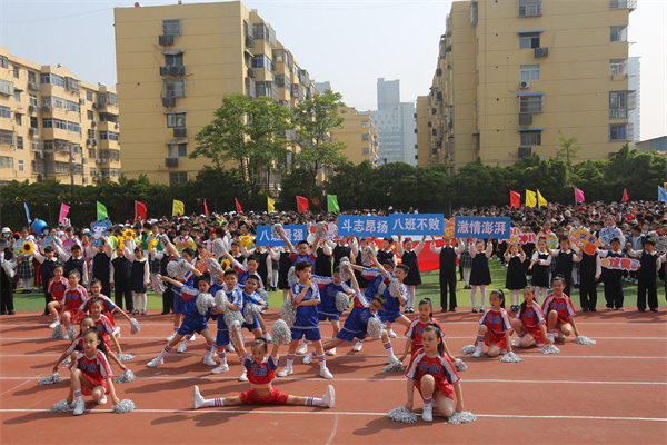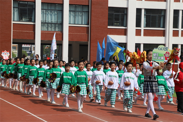 慷慨有力的音乐如同嘹亮的号角彻底点燃了整个运动场,68个班级方阵紧密围绕运动竞技项目创意纷呈轮番展示,或是一连串流畅动感的炫舞,或是灵动巧妙的队形转换,以及铿锵奋发的班级口号,尽显班级风采。点燃的激情、张扬的个性、花样的童年成为春季运动场上别样的风景!