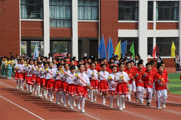 在国歌声中,全场肃立,升旗敬礼。师专一附小党总支书记、校长章建华为本次运动会致辞,他代表学校对本次运动会的举办表示热烈的祝贺!向为此次运动会筹备工作付出辛勤劳动的老师们、向积极参与本次运动会的全体裁判员和全体工作人员表示衷心的感谢和崇高的敬意。他指出,运动可以磨炼意志,希望全体同学积极参加阳光体育活动,牢固树立终身锻炼的体育健康理念,走进阳光,走进操场,走进自然,实现“每天锻炼一小时,健康工作五十年,幸福生活一辈子”的美好愿望。体育是一种勇敢、果断的精神;是一种健康、快乐的财富;更是一种大方、协调的艺术。希望同学们展现闪亮精彩的童年,团结拼搏,争创佳绩,争取竞赛成绩和精神文明的双丰收,希望全体运动员发扬奥林匹克“更快、更高、更强”精神,严格遵守比赛规程,自觉服从裁判,顽强拼搏,团结协作,在比赛中赛出风格、赛出水平,充分享受体育带来的快乐!