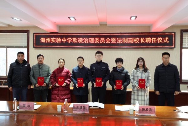 12月4日,学校召开欺凌治理委员会成立大会。海州实验中学校长王建强、法治副校长姚淞元、社工部代表、家长代表以及德育处、党政办、各年级负责人齐聚一堂,共同见证了这一重要时刻。会议由副校长顾欣主持,德育处主任童琛菲首先详细解读了防欺凌工作方案,为后续的防欺凌工作指明了方向。