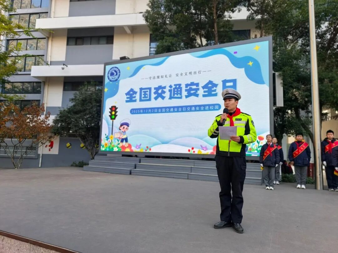 在第十四个 “全国交通安全日” 即将到来之际,连云港师院三附小的操场上,一场以 “交通安全” 为主题的升旗仪式格外引人关注。连云港市公安局交管局海州一大队二级警长赵然警官受邀走进校园,以《文明交通当标兵 共创安全伴我行》为题作国旗下讲话,用真实案例、专业数据与生动表达,为全校师生带来一堂兼具实用性与警示性的交通安全教育课。